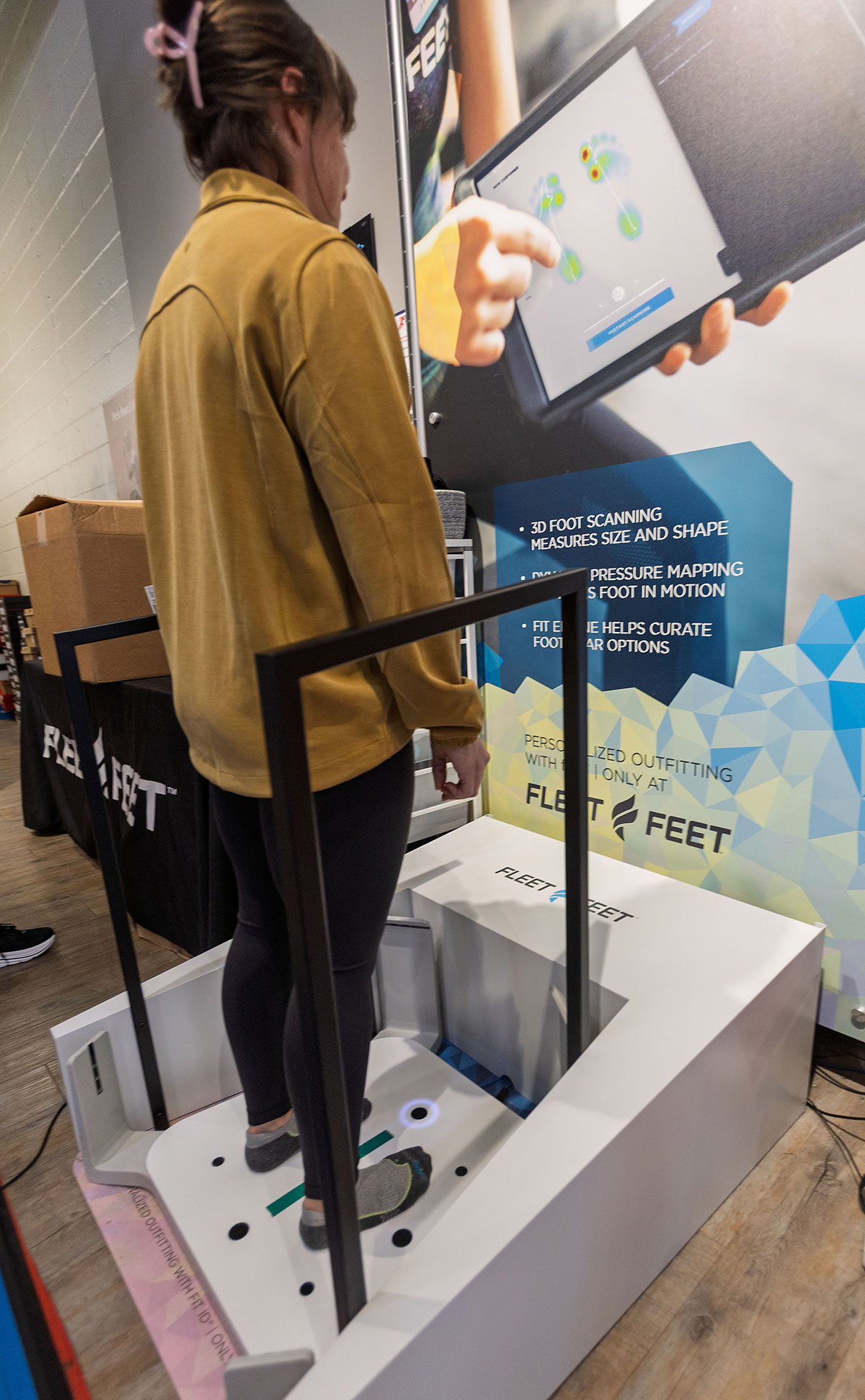 Fleet Feet’s 3D scanner profiles a customer’s foot length, width, volume, and arch height to help find properly supportive shoes and insoles.