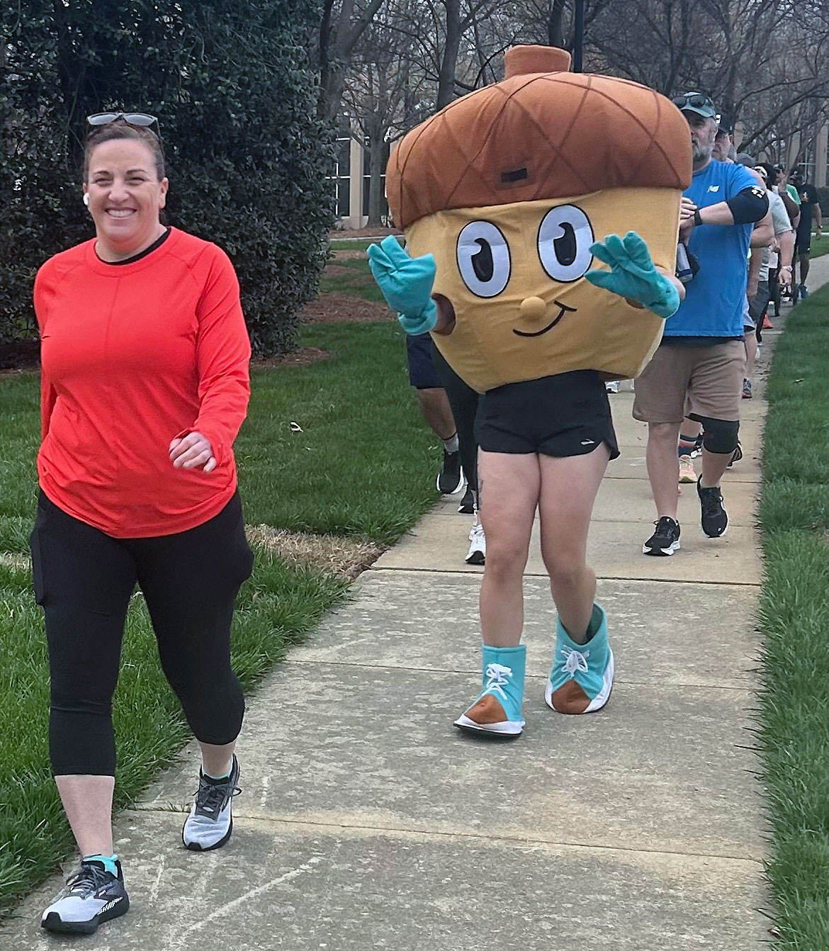 Fleet Feet’s official mascot “Oakleigh” the acorn joins runners and walkers local event. Photo courtesy of Fleet Feet Raleigh-Morrisville