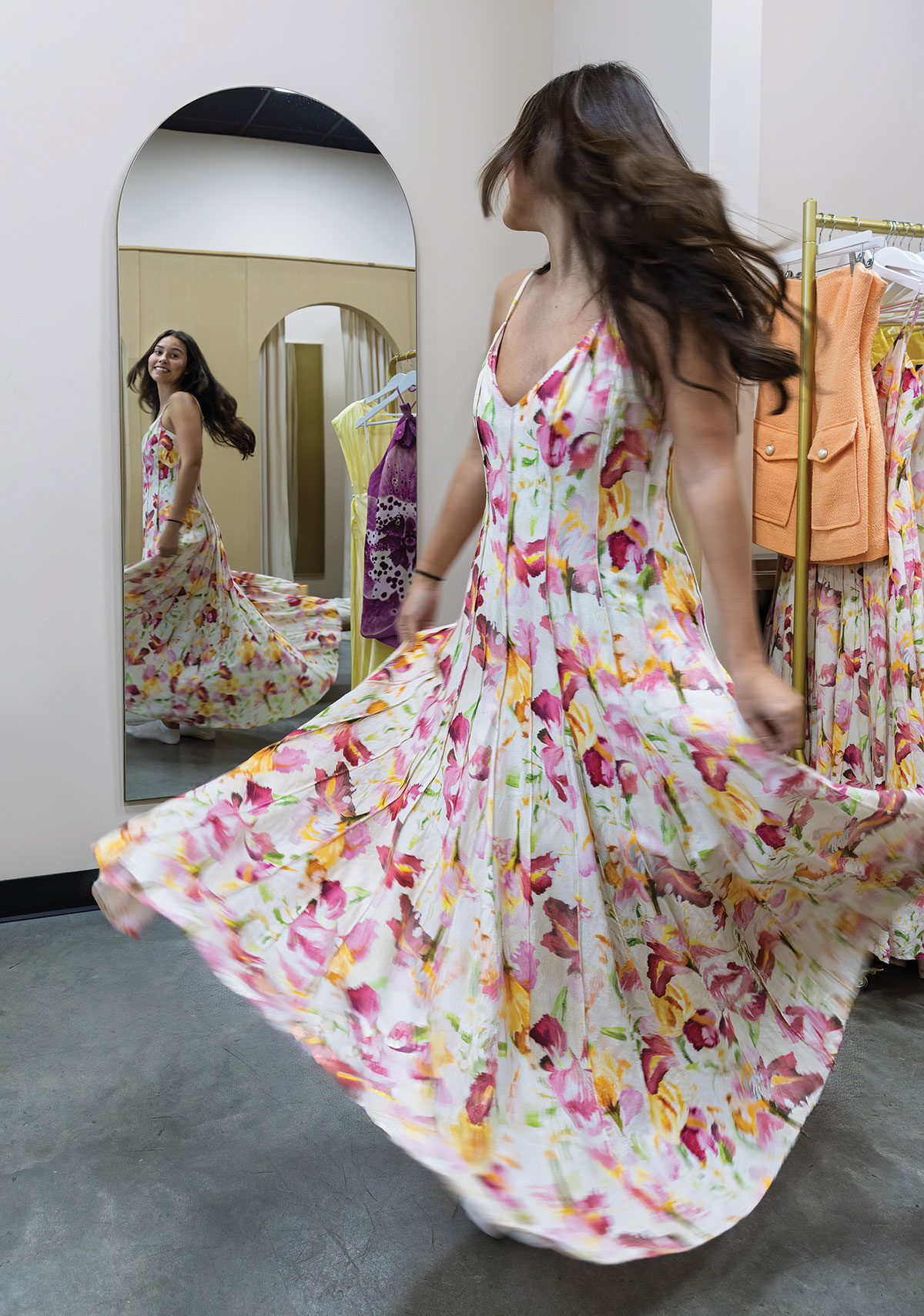 “The store looks like a traditional retail store, but (customers) can come in, try everything on, and just rent it instead of purchasing,” says Emmy. “So it really keeps the unique concept of the affordability, sustainability, and accessibility aspects of the clothing rental industry, and adds in that insurance of making sure that it fits for the customer.”
