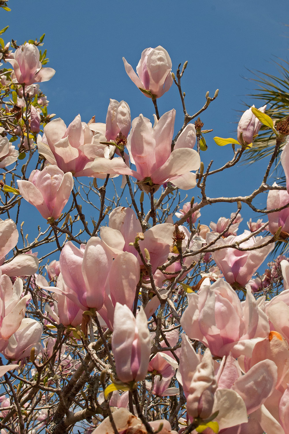 One popular form of these raring-to-go pretties is the saucer magnolia (Magnolia x soulangiana), which has large early bird fl owers that commonly glow in the familiar magnolia white hue — though various cultivars can be found tinged in pink, light purple, or, with a little help from similar deciduous magnolia species, even yellow. A saucer magnolia will usually stretch up to 20 feet high and about as wide.