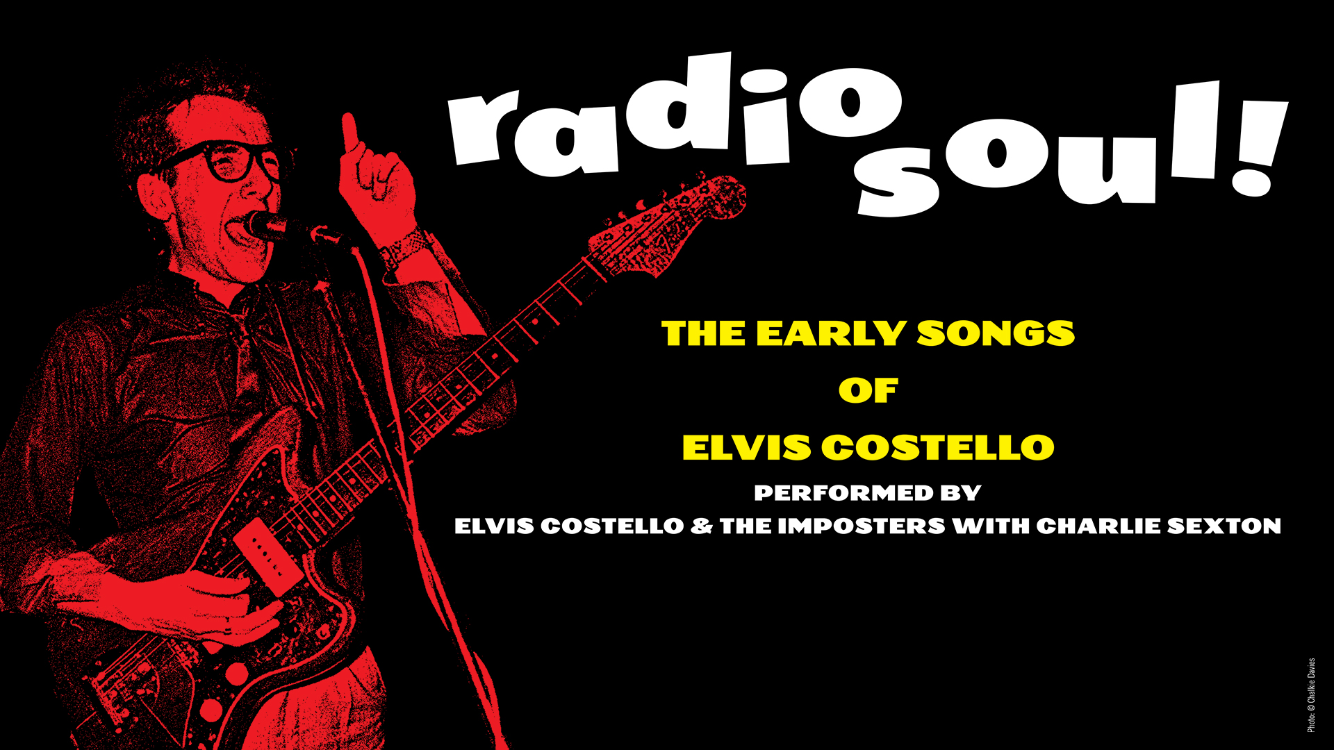 He has performed worldwide with his bands, The Attractions, His Confederates – which featured two members of Elvis Presley’s “T.C.B” band – and his current group, The Imposters – Steve Nieve, Pete Thomas and Davey Faragher – as well as solo concerts, most recently his acclaimed solo show, “Detour.”