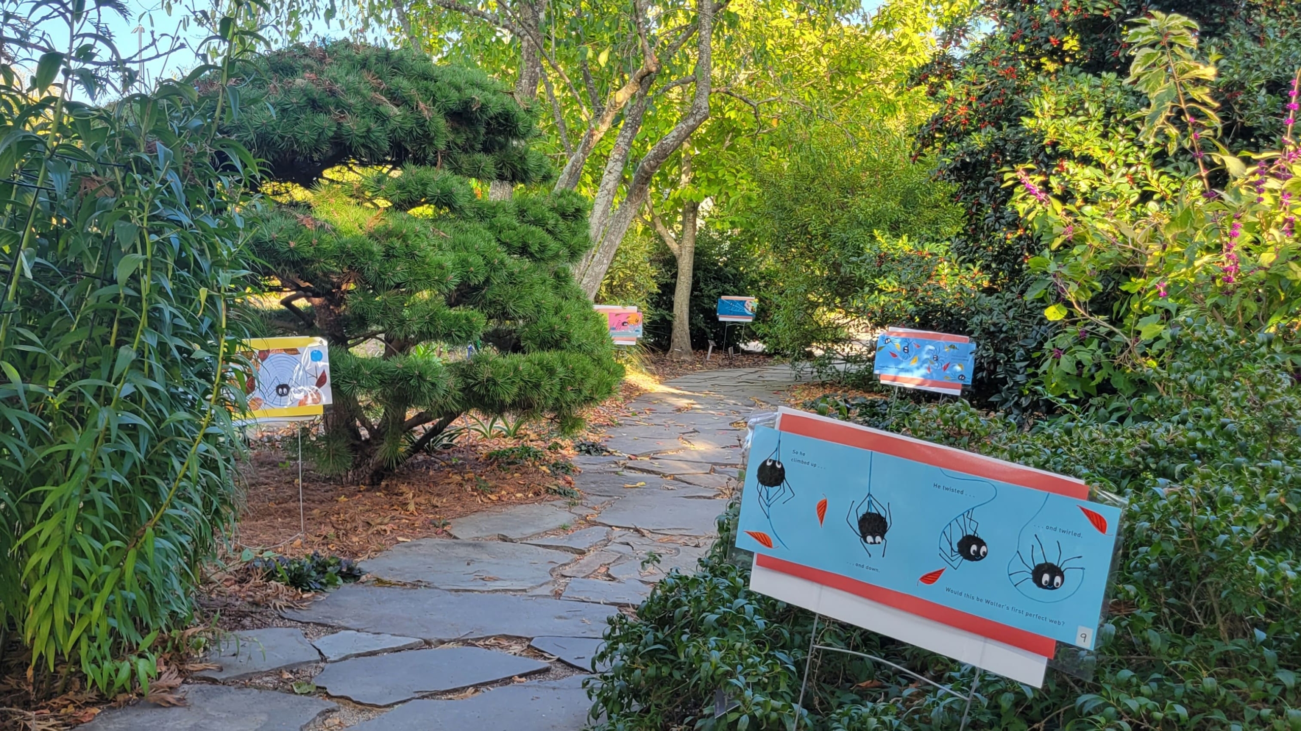 Not familiar with Story Walks? Story Walks are self-guided experiences where pages of a book are displayed in the garden. Information about where to find the title page is posted at the Visitor Center. Once you find the first page of the story in the garden, you’ll see the next page and be able to follow the story as you stroll through the gardens. There is no set time to start this experience and can be done at your own pace. Most stories can be experienced in about half an hour to an hour.