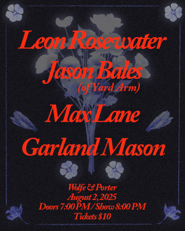 Come out and hear singer-songwriters Leon Rosewater, Jason Bales (of Yard Arm), Max Lane, and Garland Mason during an acoustic concert at Raleigh’s Wolfe & Porter starting at 8 p.m. Aug. 2. Tickets to this all ages show cost $10. Buy tickets at https://www.eventbrite.com/e/leon-rosewater-jason-bales-max-lane-garland-mason-at-wolfe-porter-tickets-1520378215169
