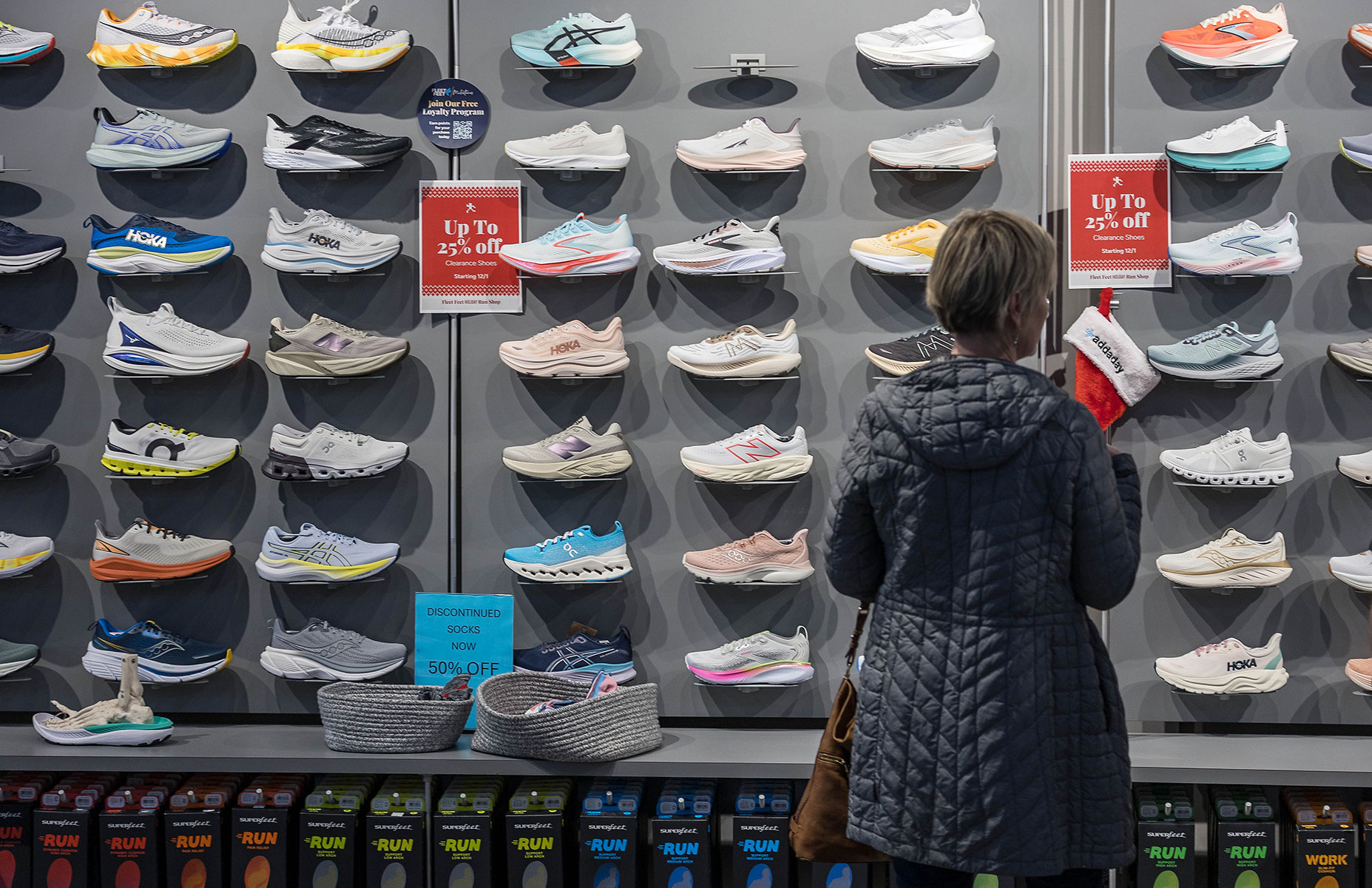 The shoe outfitting process allows team members to use 3D fit id® foot scanning technology to gather information about feet and the support they need. Precise measurement data is gathered, and in concert with an assessment of the foot’s path of motion and stride, team members can find the perfect shoe for you. (For any runners out there, the importance of wearing the right shoe cannot be overstated, as injuries like shin splints, plantar fasciitis, and runner’s knee are all a result of wearing the wrong shoe.) “We don’t work on commission,” explains Fleet Feet marketing director Sharon Kyner, “so we’re able to spend the amount of time necessary to ensure that each customer leaves happy and heard.”