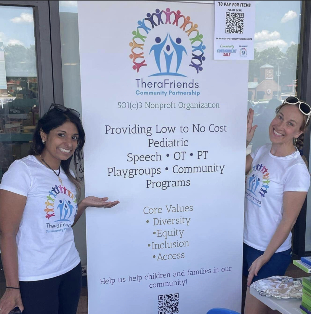 Tisha Shah, a speech therapist, and Stephanie Hall, an occupational therapist, first met while developing a PTA Diversity, Equity, Inclusion committee at Penny Road Elementary School. After sharing their concerns about health care access for the families they serve, the pair founded TheraFriends in 2021 to improve access to pediatric therapy services and programs for families in the Triangle.