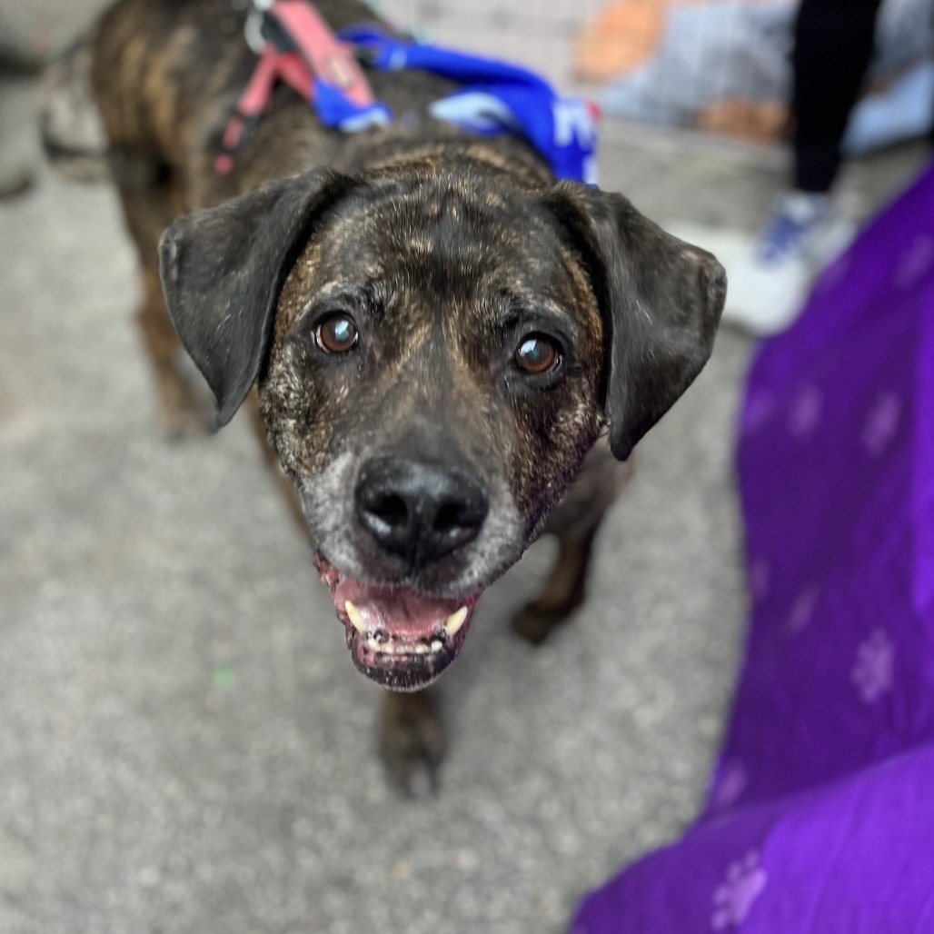 Bartoc has been with Freedom Ride Rescue since Christmas Eve. He’s this big, lovable goofball – about 120 pounds of pure sweetness! Yeah, he’s rocking the silver fox look a little bit at 11, but honestly, it just adds to his charm. He’s still got that puppy twinkle in his eye when he’s bouncing around the yard or making new buddies at the dog park.