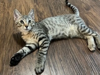 Hi I am Fieri! I am a little tabby who shares a name with the famous chef, but my real specialty is serving up cuddles and playtime. I am always the first to investigate, the first to pounce, and the first to dash into new adventures with my siblings, Flay and Nigella.