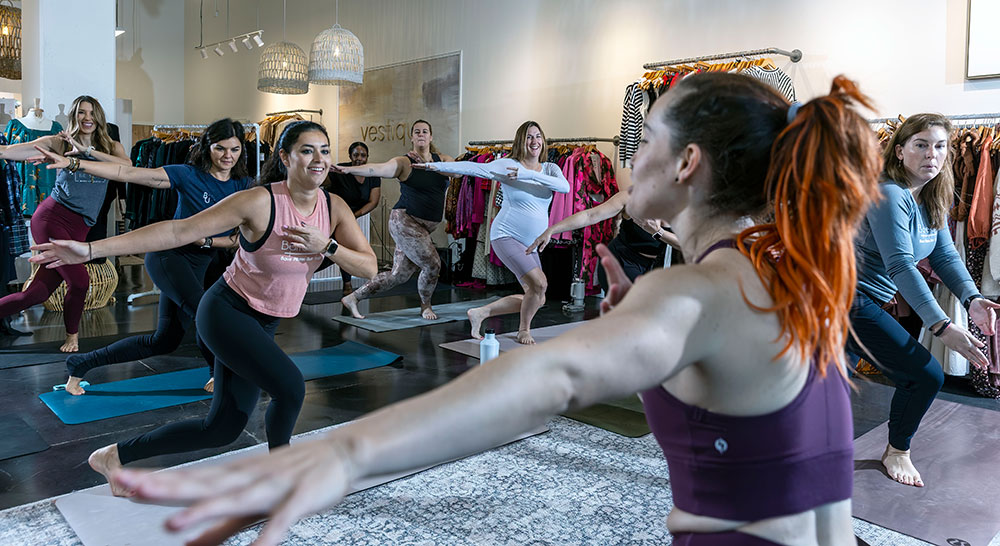 “Whether we’re hosting a class off-site or enjoying a community social, our students have always been the driving force behind our efforts. They are our why! It never feels like enough time before or after class to fully connect, and because we truly enjoy getting to know each other off the mat, socials really help cultivate that need. More recently, we’ve collaborated with Vestique – Cary located at Fenton and Restore Hyper Wellness located in the Village District.