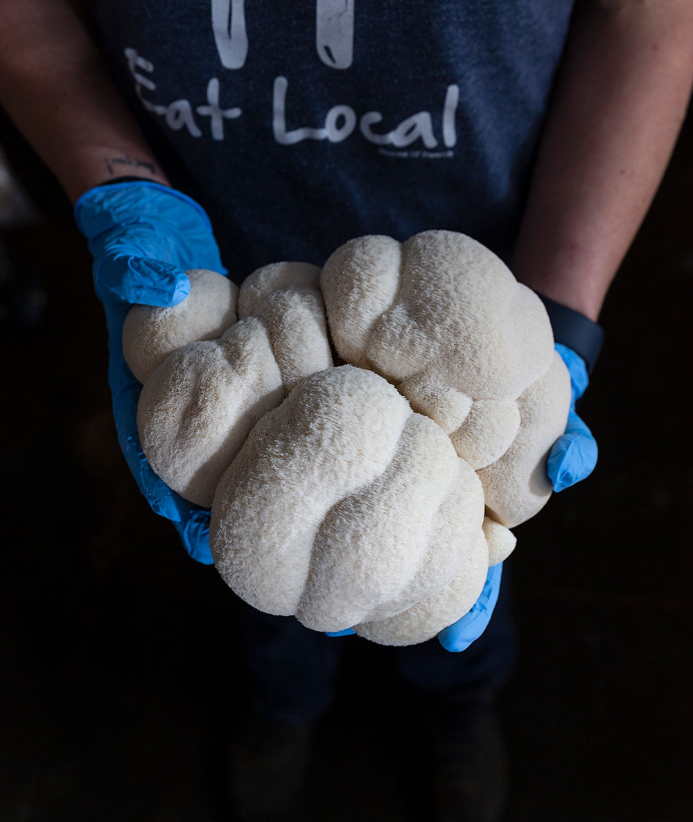 Fox not only supplies area restaurants with her mushrooms (Fiction Kitchen, Trophy Brewing, Second Empire, and Saint Jacques, to name just a few), but her background and two degrees in nursing have opened her mind to their healing effects. Lion’s mane, in particular, is one mushroom that has been getting a lot of attention lately. The beta glucans that occur naturally in their cell walls, as well as in some other mushrooms, have been attributed to helping with everything from stimulating nerve growth and improving cognitive function to lowering anxiety and depression.