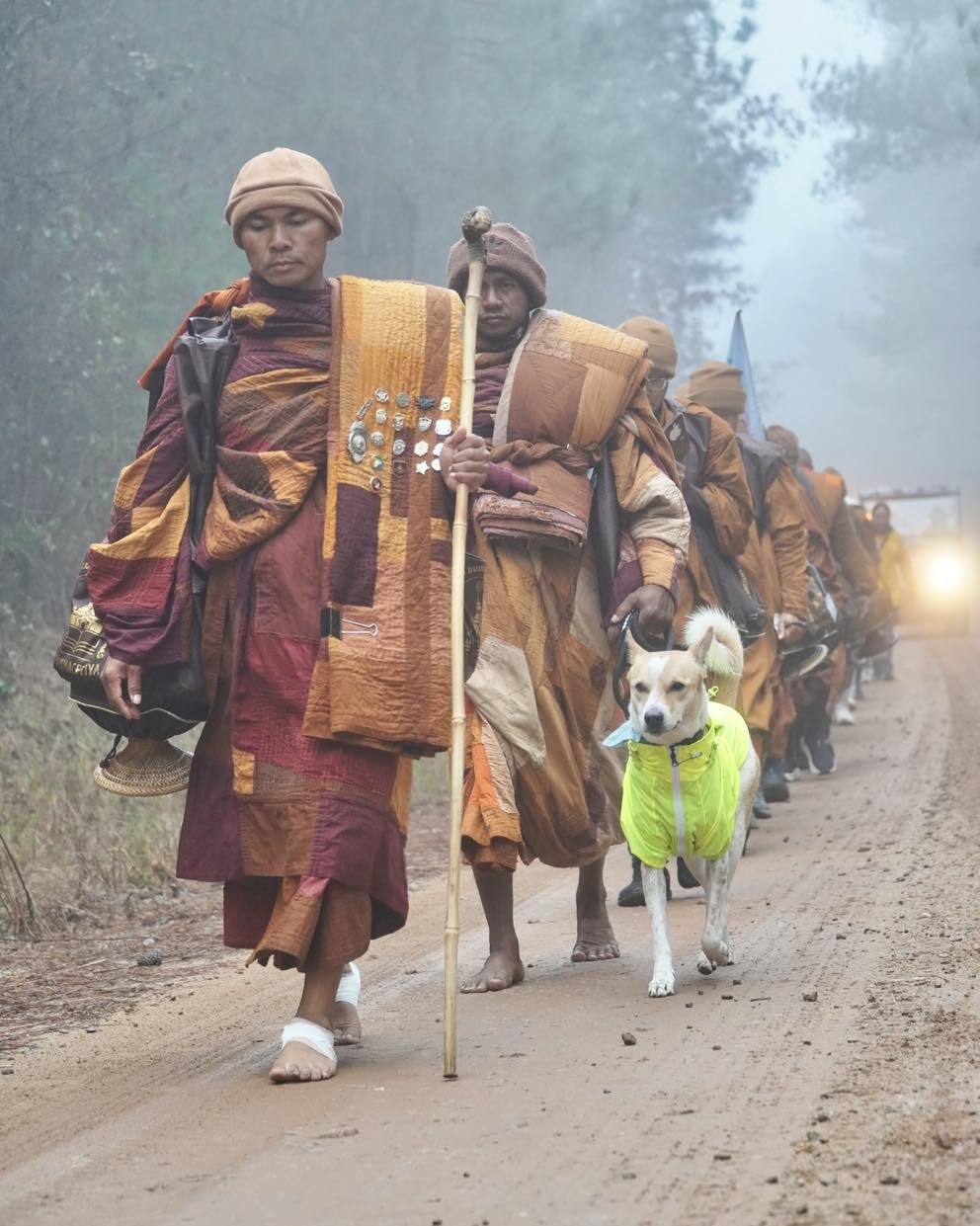 The Walk for Peace departed the Huong Dao Vipassana Bhavana Center in Fort Worth, Texas, on October 26 and is expected to reach the final destination of Washington, DC, in mid-February. Their canine companion Aloka is walking with them every step of the way.